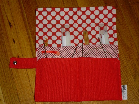 Finally, I am very excited about the new knitting needle case I made. It is a very small case that I designed primarily for holding my sock knitting DPN’s and circular needles… So i bring