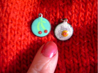 Tiny little charms destined to be zipper pulls. They are enamel on copper and are sooooo nice. I have been waiting to tell everyone about them because i wanted to get first pick of the new batch. But i have, so head on over to her etsy shop and buy the rest.